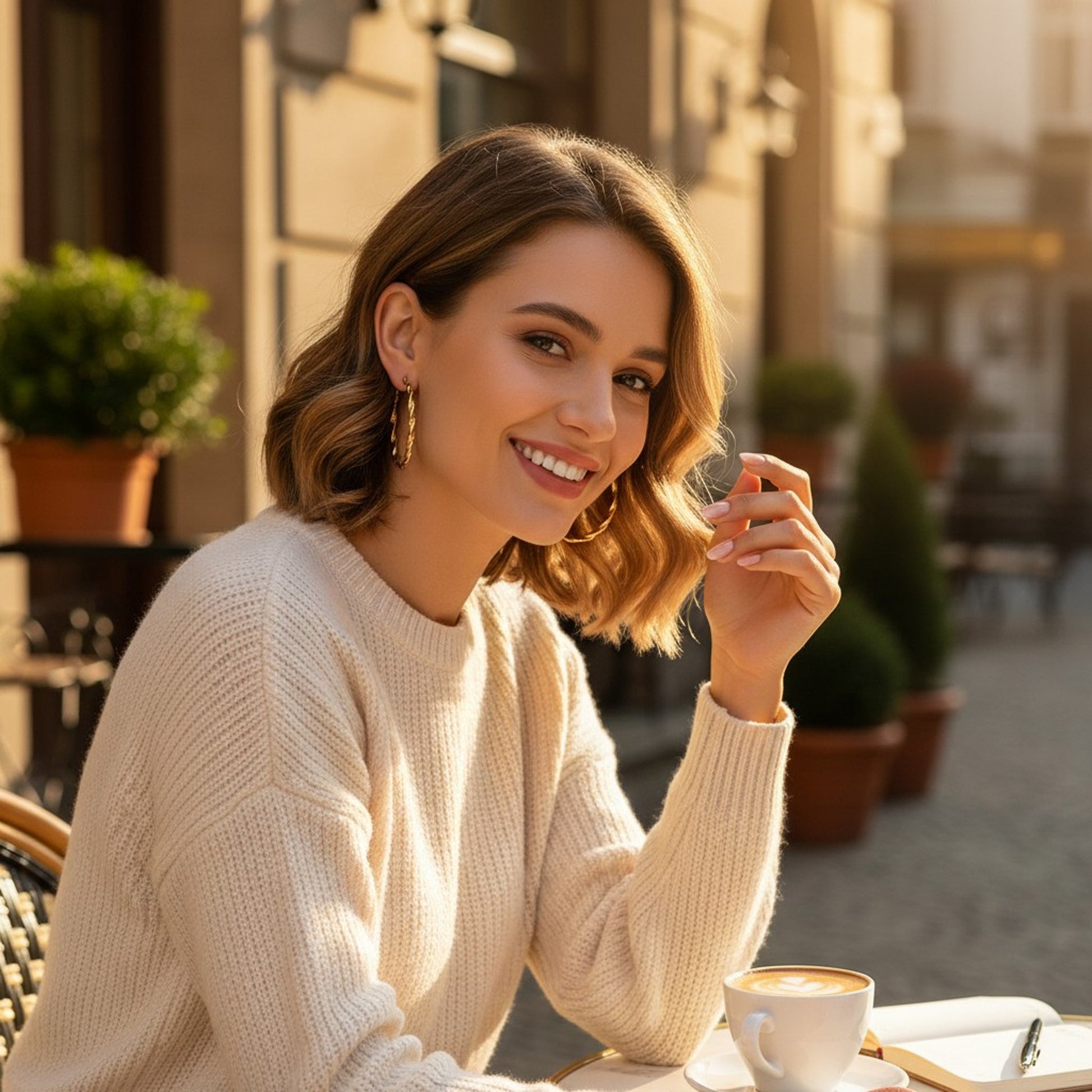 Der Durchmesser von 5 cm sorgt für eine klare Präsenz am Ohr, ohne schwer zu wirken. Mit einer Breite von 0,3 cm bleiben die Creolen schlank und modern. Die gleichmäßige Spiralstruktur reflektiert das Licht aus jedem Winkel und verleiht dem Goldton eine lebendige Optik.